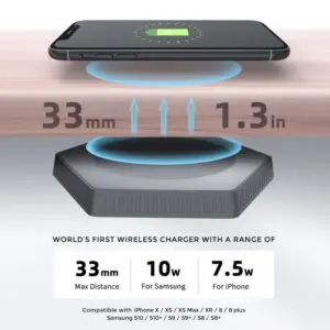 Keep your surfaces clean and intact with this Invisible long distance desk charger. It’s a Qi wireless charging solution that will provide maximum power to your devices while remaining completely out of sight.